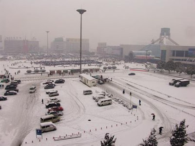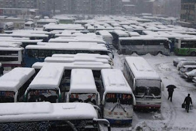 Ferry buses are parked at a terminal in Hefei, capital of east China's Anhui Province, Jan. 27, 2008. All the highways in Anhui Province were closed on Sunday due to heavy snow