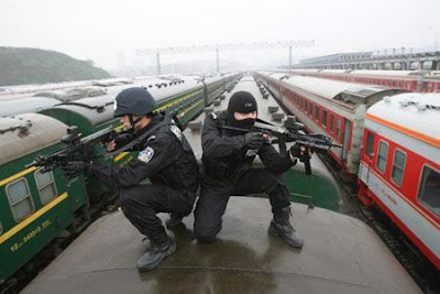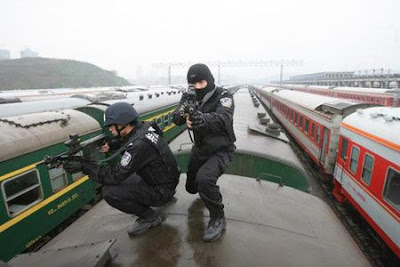 Taken on January 22, in Chongqing Autonomous City, full armed special policemen trained to deal with emergency accident.