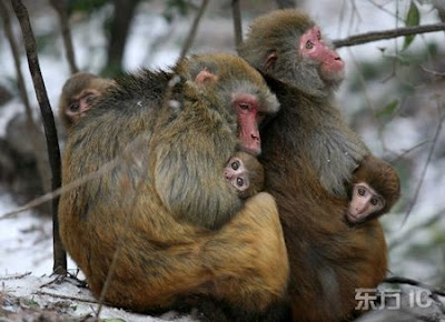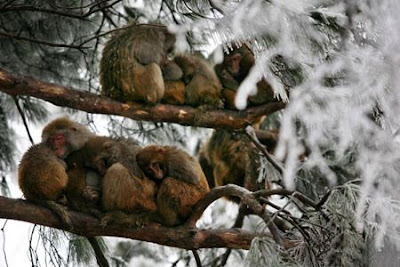 Mother Monkey and her Child in Chilly winter
