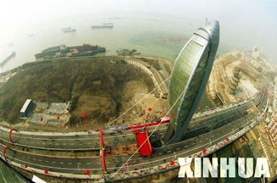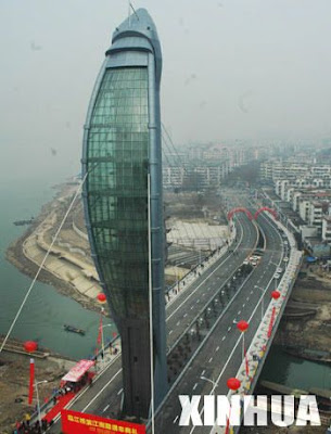 Photo taken on Jan. 6, 2008 shows Linjiang Bridge in Wuhu, east China's Anhui Province. The bridge opened to traffic on Sunday is located at the infall of the Yangtze River and Qingyi River. The 73.5-meter-high main tower of the bridge was built in a shape of fish