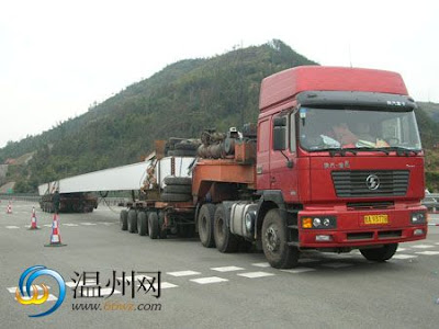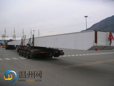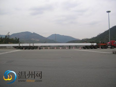 The truck is 54 meters long and transfering a steel component for a power plant from Jiangsu province to fujian province.